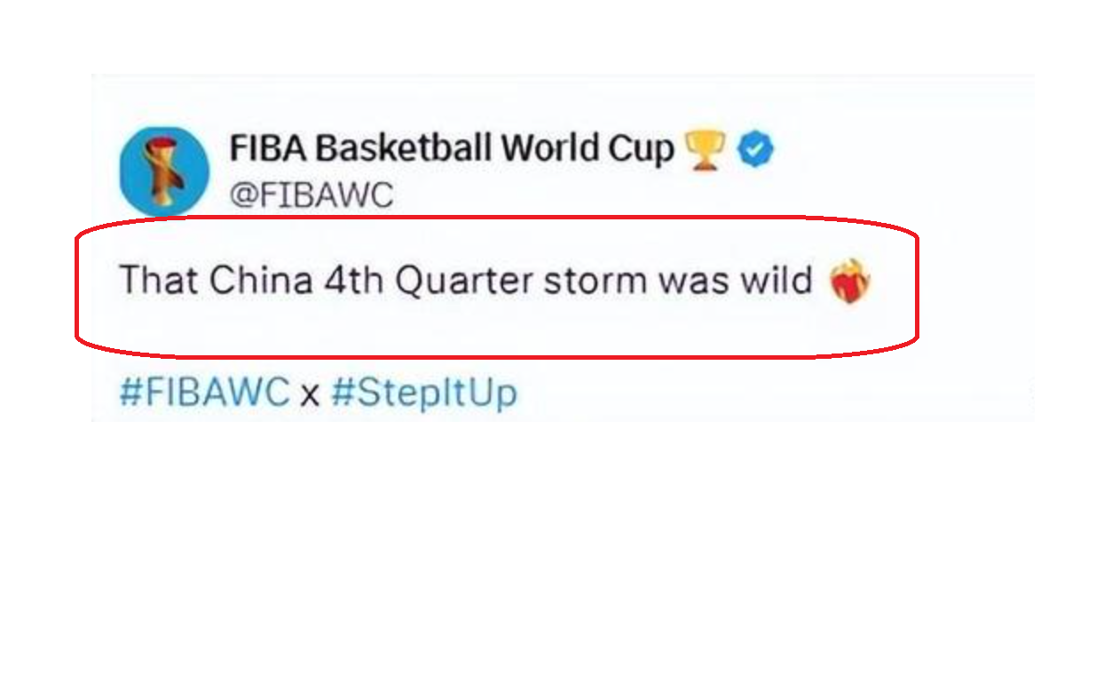 FIBA发文点赞中国男篮,表示中国男篮在关键的第四节比赛,打出了风暴,打得太猛了!