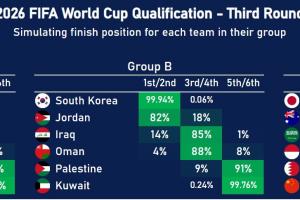 开云体验-数据机构预测:中国80%概率无缘世界杯!印尼58%获得附加赛资格 2025-09-09 00:04:02 nba 0 812 体育资讯03月26日讯 数据机构Footy Rankings发布世预赛预测。 其中中国队20%排3/4(附加赛),80%排在5/6(无缘世界杯),而印尼58%概率获得附加赛资格。 # 上一篇:开云在线-【欧冠决赛评分】克罗斯完美告别,小熊步入大师行列 # 下一篇:开云体育-迪巴拉社媒祝贺帕雷德斯喜得贵子:你好劳蒂 也许您对下面的内容还感兴趣: 给您推荐相同类型的内容: 德转:原武汉三镇外援图多列、原河南后卫刘斌加盟广东广州豹 德转更新,原武汉三镇外援图多列、原河南队后卫刘斌加盟广东广州豹。图多列现年29岁,来自罗马尼亚,司职前锋。此前球员共为武汉三镇出场26次,打进10球。现在他在德转上的身价为90万欧元。刘斌现年27岁,司职后卫。此前球员共为河南队出场25次,打进1球助攻3次。现在他在德转上的身价为7.5万欧元。... 开云官网-辽宁男篮官宣杨鸣辞职 原助理教练暂代主教练职 中新网1月26日电 辽宁沈阳三生飞豹篮球俱乐部官方微博26日发布公告称,近日,辽宁沈阳三生飞豹篮球俱乐部主教练杨鸣因个人身体原因,正式向俱乐部提出辞去主教练职务的申请。杨鸣指导在请辞时也明确表态,未来将继续为辽宁篮球贡献力量。经俱乐部与杨鸣指导充分沟通,我们尊重其个人意愿,并同意其离队休整。杨鸣指导已于今日返回沈阳,待其身体恢复后,我们会根据具体情况为其安排后续工作。感谢杨鸣指导长期以来为球队的付... 52分狂屠勇士!绿军再创历史纪录 一数据预示夺冠 体坛周报全媒体记者 孔德昕 面对着2022年击碎自己冠军梦的金州勇士,面对着本赛季前半段加时击败过自己的勇士,波士顿凯尔特人用一场摧枯拉朽式的胜利完成了复仇,并宣告自己为何是本赛季毫无争议的冠军头号大热门。 北京时间3月4日,凯尔特人主场140比88狂胜勇士,52分创造了他们本赛季最大赢球分差,这也是他们队史第三大赢球分差。半场打完时,勇士已经远远落后44分,这是他们队史半场输分最多的一次,此... 开云赛事-绿军无限换防令热火难招架 巴特勒也被逼上孤岛? 体坛周报全媒体记者 孔阳 凯尔特人与热火系列赛首战结束之后,杰伦·布朗在接受采访时这样说道:“在季后赛比赛之中丢掉118分非常糟糕,也是我们不能接受的事情。” 凯尔特人们说到做到。系列赛第二战,他们在防守端有着明显的反弹。尽管更多人把目光都放在绿军的进攻上,可他们同样限制热火只有102分,命中率也在45%以下。“我们知道凯尔特人在防守端能做什么,他们面对进攻出色的球队也防得很好。我们系列赛首战... 澳大利亚世界杯名单带上18岁新星 塞恩斯布里落选 体坛周报全媒体记者王晓瑞报道 11月8日,澳足总通过视频方式,对外公布参加卡塔尔世界杯的26人名单。效力澳超中央海岸水手的18岁小将库尔榜上有名,成为名单中的最大惊喜。但在12强赛一度扮演重要角色的塞恩斯布里、格兰特、汤姆·罗基奇、塔加特纷纷落选,不禁令澳洲媒体很是吃惊。 相比2018年世界杯名单,马修·瑞恩、德格内克、莱基、穆伊、麦克拉伦、贝西奇、武科维奇、杰克逊·欧文8人依旧在列,此外...
